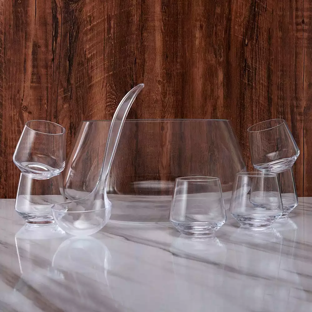 • 8 Piece Set includes (1) Punch Bowl, (1) Ladle, and (6) Drinking Glasses