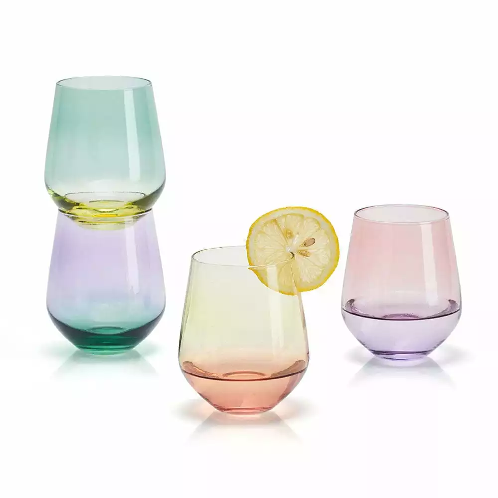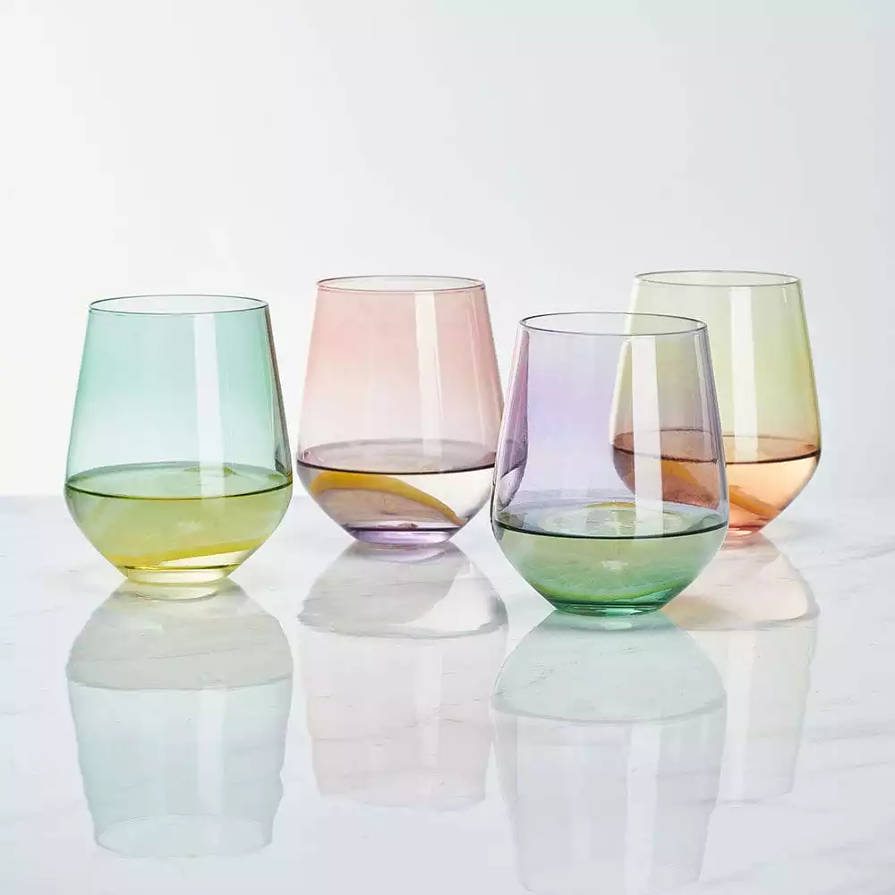 This Chroma Stemless Wine Glass Set will bring modern mystique to any gathering or celebration. Features a distinct color tint with an ombre fade effect in four unique colors that will help your guests easily identify their glass.