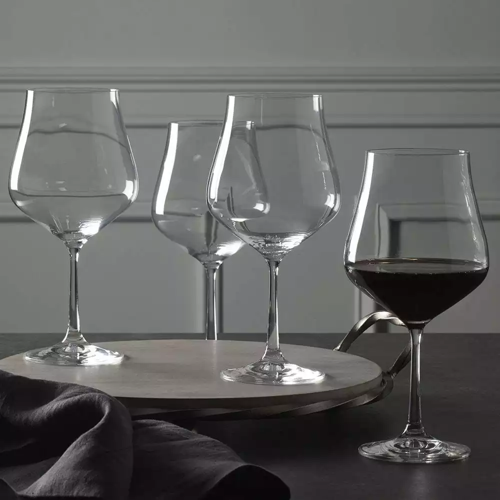 This Grace Set of 4 Red Wine Glasses feature a distinct tulip shape that flares at the rim to open your senses to the aroma and taste of your beverage as you sip.