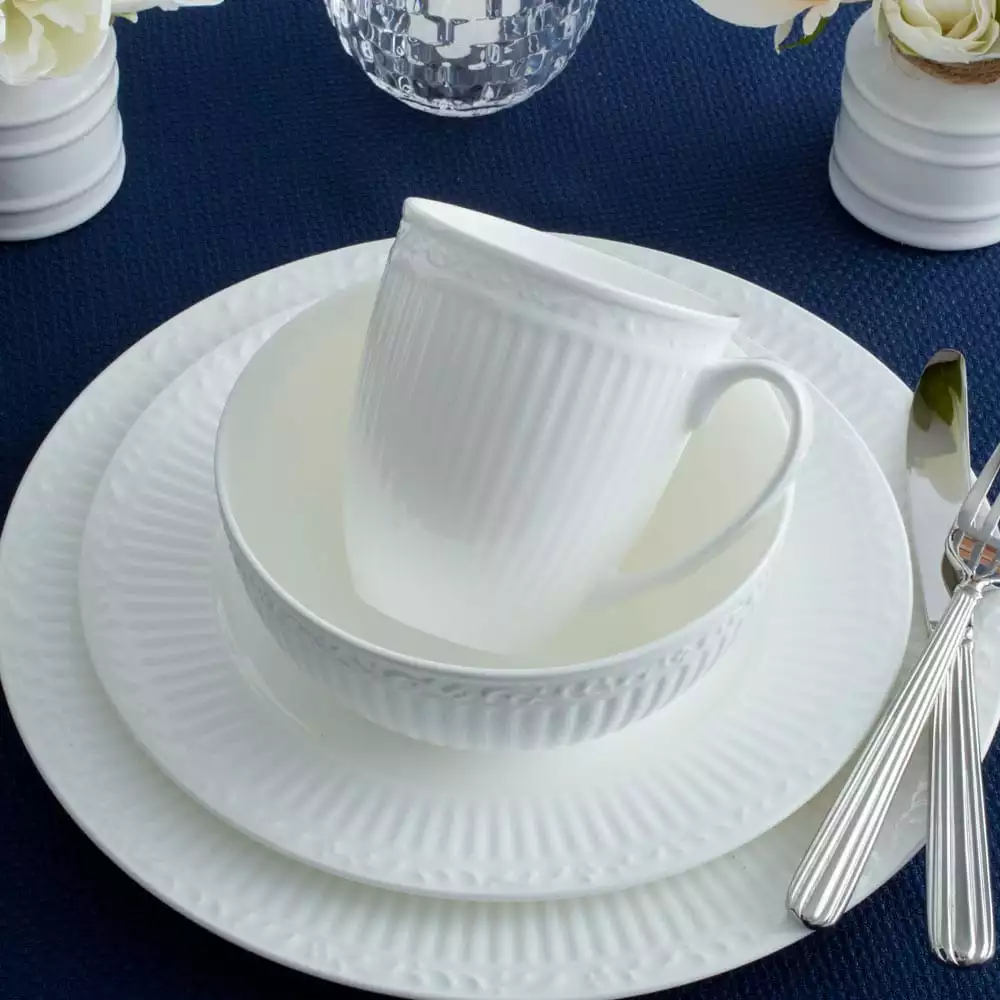 Italian Countryside Bone Dinnerware brings simple sophistication and elegance to every dining occasion. The fluted bands and column-like detailing of this collection recall classical Italian architecture. Crafted of bone china. Chip resistant, microwave, dishwasher, freezer and oven safe. Mug holds 14 ounces.
