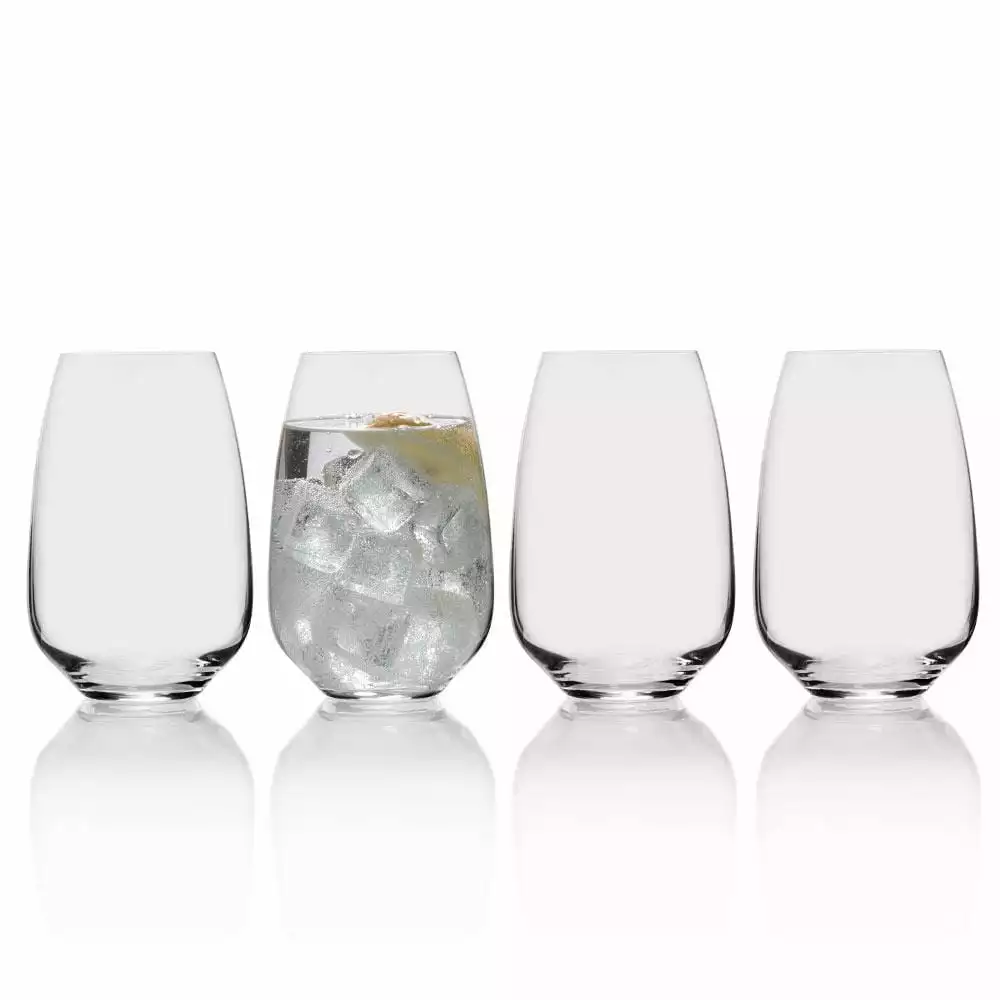 Melody glassware will add stylish simplicity to any tabletop display. Beautifully crafted of fine European lead-free crystal, these crisp, clear glasses bring subtle elegance to your place setting. Dishwasher safe. Set of 4 highball glasses, each measures 3-1/2 inch diameter x 5-1/4 inch high and hold 20 ounces.