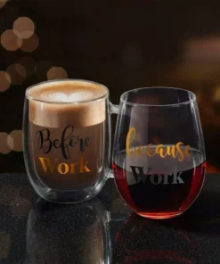 Wholesale ⭐ Mikasa® Double Wall Mug and Stemless Wine Glass Set of 2, Work Sentiment 👍