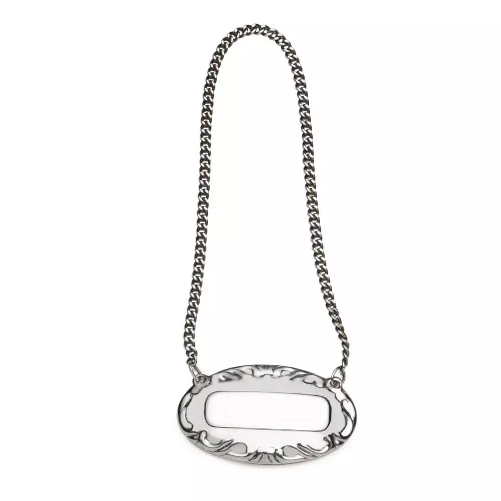 Add elegance to your home bar with this Empire Silver Liquor Label. This liquor label includes a silver chain to hang around the neck of your decanter. Bring the luxury of sterling to your cocktail hour for elegance and sophistication. Crafted of sterling silver. Made in America. Liquor label measures 1-3/4 inch wide x 1 inch high.