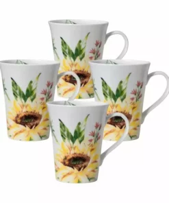 This Mikasa Sunflower Set of 4 Mugs feature a sunflower design in bold hues of pink, blue, yellow, and green, adding charm and a splash of color to your casual table setting.