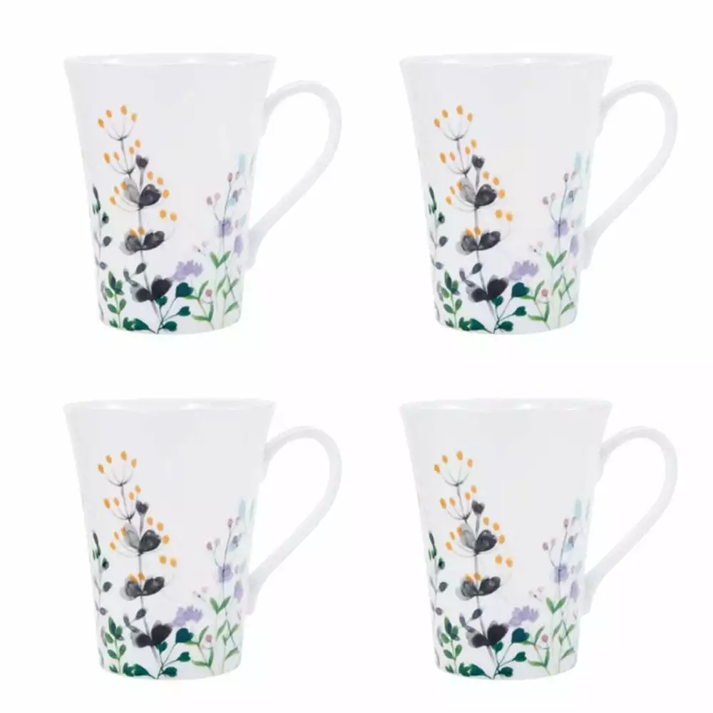 This Mikasa Tivoli Garden Set of 4 Mugs feature a white background, with delicate, colorful buds sprouting around the bottom rim, and will make every meal feel like a walk through a fresh spring meadow.